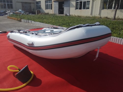 3,V型船底(如內含充氣龍骨的船底)能很好的將重心置于中心位置,使船在被風浪拍打時不會嚴重搖晃而失去重心最終被拍翻。而且V型底的充氣橡皮艇對水的阻力會減小,可以提高航行速度。V型船底再加上充氣橡皮艇翹頭技術,對于想要進江入海的充氣橡皮艇來說簡直完美。