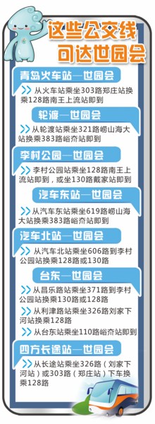 本報訊 2014青島世園會選址在李滄區百果山森林公園。目前,周邊主要有128路、130路、383路等公交線,從市區多個地方前往主場址無法直達需要換乘。為此,公交集團于昨日發布了世園會公交換乘指南,以青島火車站、青島長途汽車站、輪渡、臺東、李村公園等客流密集地為起始點,設計了多條換乘路線,方便市民和游客前往世園會觀光游覽。